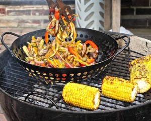 After a while, Jo was serving everyone roasted vegetables and other vegan food from the vegan barbecue, whilst John served meat to the select few who wanted it from the meat barbecue.
