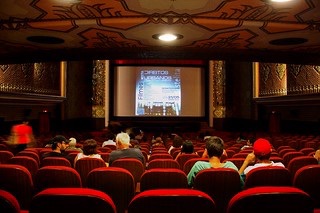 The whole cinema was shrouded in darkness.